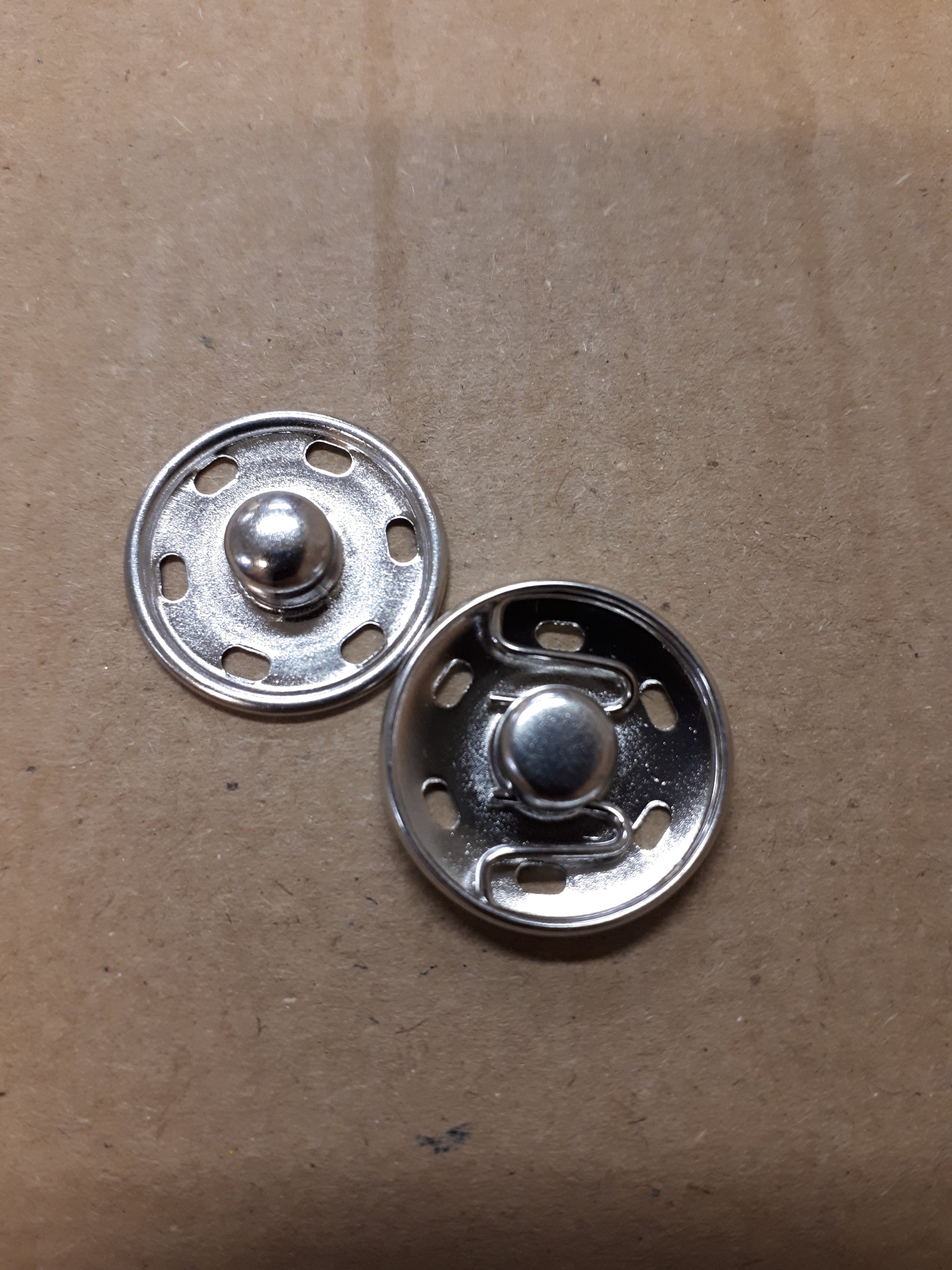 Trykknapp 21 mm i fargen sølv. Fin størrelse til bruk på kåper og jakker. Disse selges stykkvis, så du må velge antall knapper du trenger til ditt prosjekt.